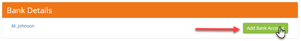 Click on the Bank Acc button to update bank details (the Bank Acc button will be red if the bank account details are missing and green if the record is complete).