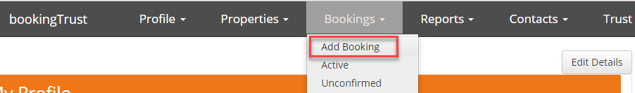 To add a new booking go to Bookings > Add Booking