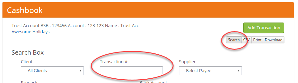 - Find the transaction in your Cashbook (go to Trust Account > Cashbook)