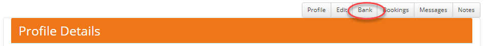 - Next, add the owner's bank details. From the Profile Details screen, select the Bank button on the top of the page.
